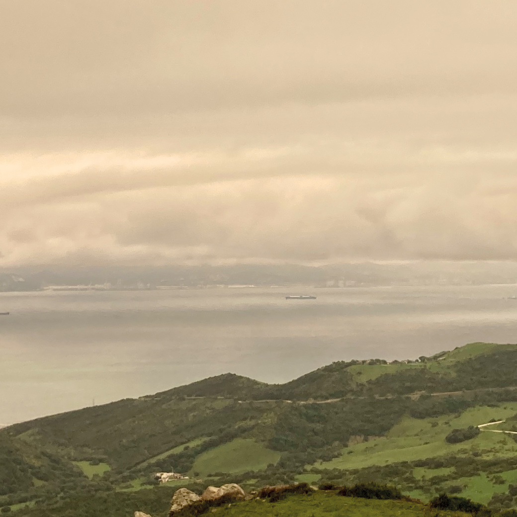 Etwas später komme ich wieder in die Bergregion Nahe der Küste. Wiedermal gehts über eine atemberaubende Serpentinenstrecke und dann kann ich auf einmal völlig unerwartet Afrika sehen. Ich befinde mich oberhalb der Meerenge von Gibraltar und quietsche vor Freude laut auf! Ich sehe da drüben Afrika! So nah! An einem Mirador, einem Aussichtspunkt, halte ich an, mache ein schnelles Foto und Pipi und hüpfe schnell wieder in Bo um weiterzukommen. Bis Tarifa sind es nun nur noch weniger als 20 Minuten.